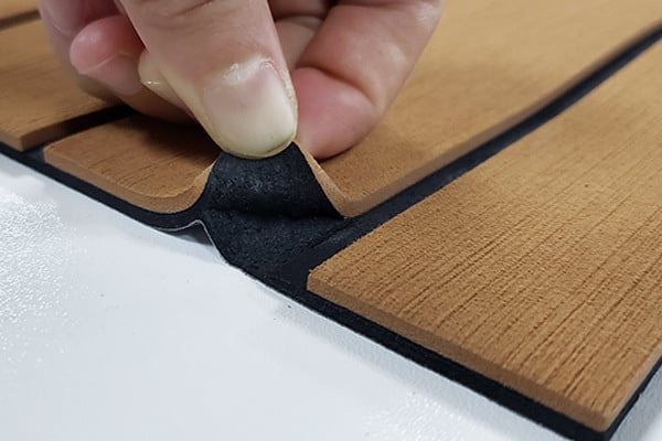 Vi bruger kun de allerbedste klæbemidler fra 3M®. Gulvet er nem at vaske med vand, og er naturligvis meget modstandsdygtigt overfor bla hav vand, pga den lukkede celleskum.
